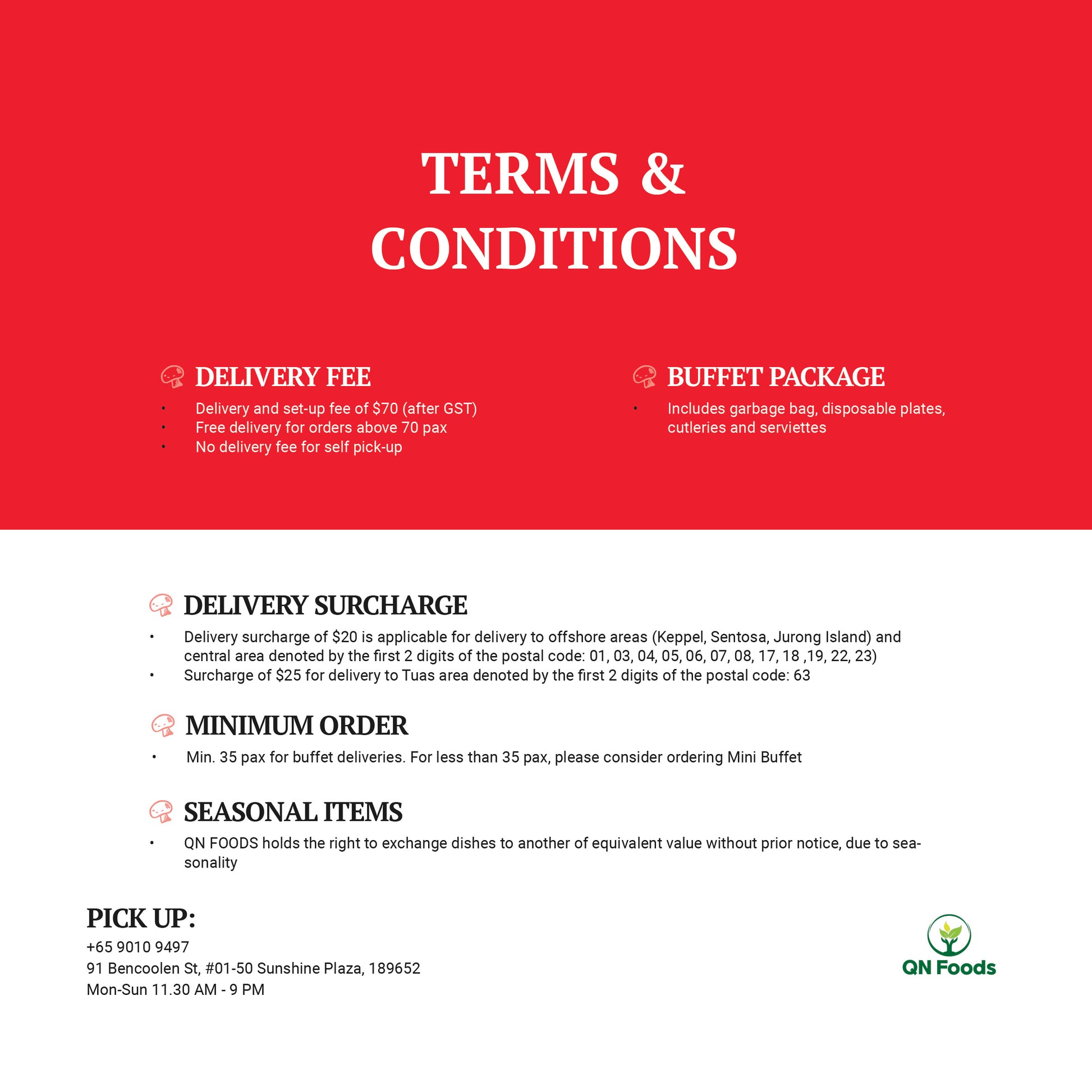 - $70 delivery fee islandwide. Free delivery for orders above 70 pax.